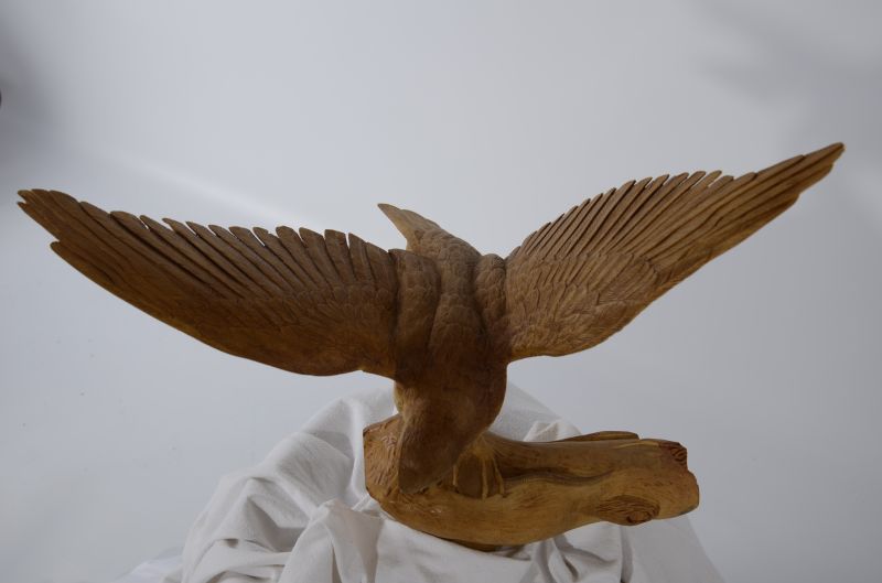 Dit snijwerk vergde veel geduld. Bij het snijden van alle veren en de vleugels moest je uitkijken dat je niets afbreekt.