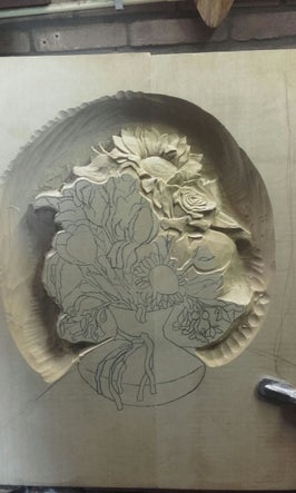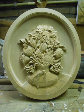 Houtsnijwerk naar voorbeeld stilleven. Het begin van een lang proces.